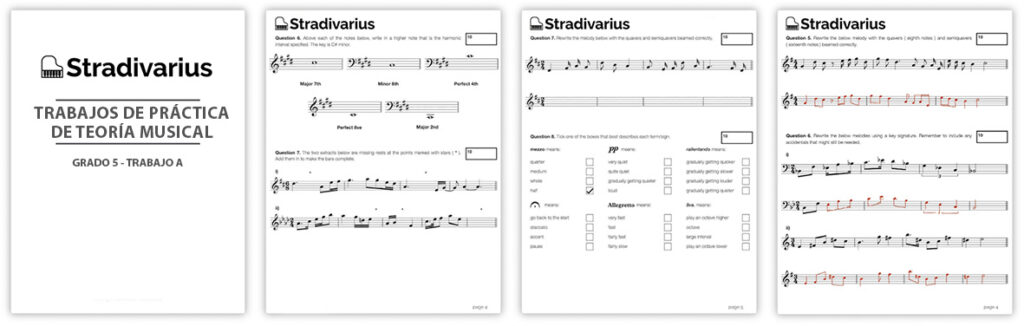 - Documentos de práctica escritos que tienen el estilo de los antiguos exámenes ABRSM.